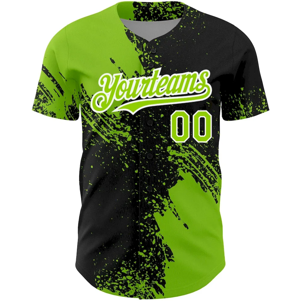 £29.99Custom Black Neon Green-White 3D Pattern Design Abstract Brush Stroke Authentic Baseball Jersey