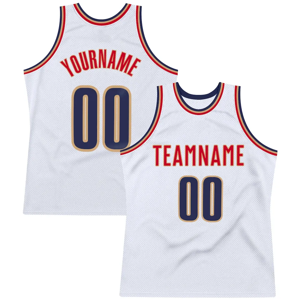 £38.99Custom White Navy-Old Gold Authentic Throwback Basketball Jersey