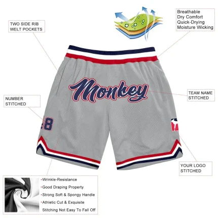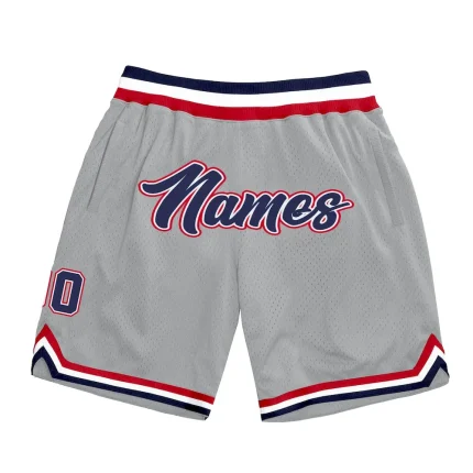 Custom Gray Navy-Red Authentic Throwback Basketball Shorts