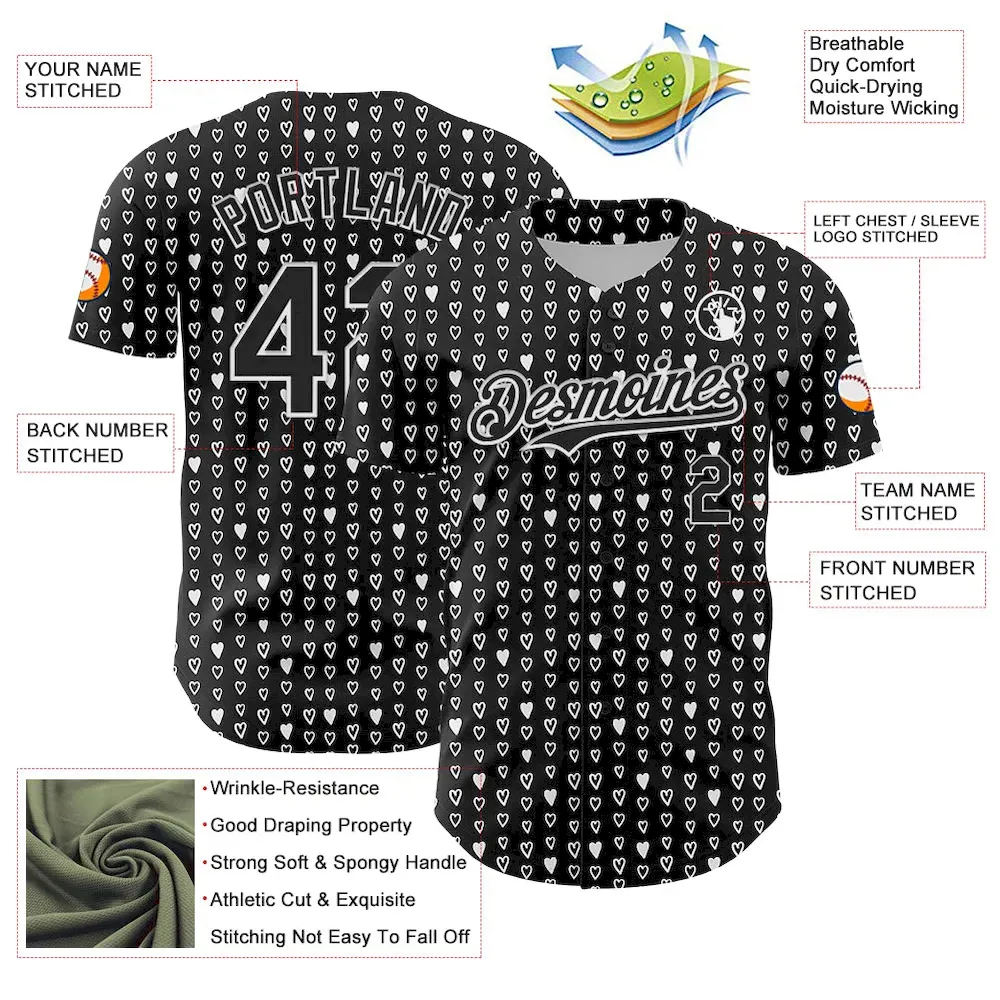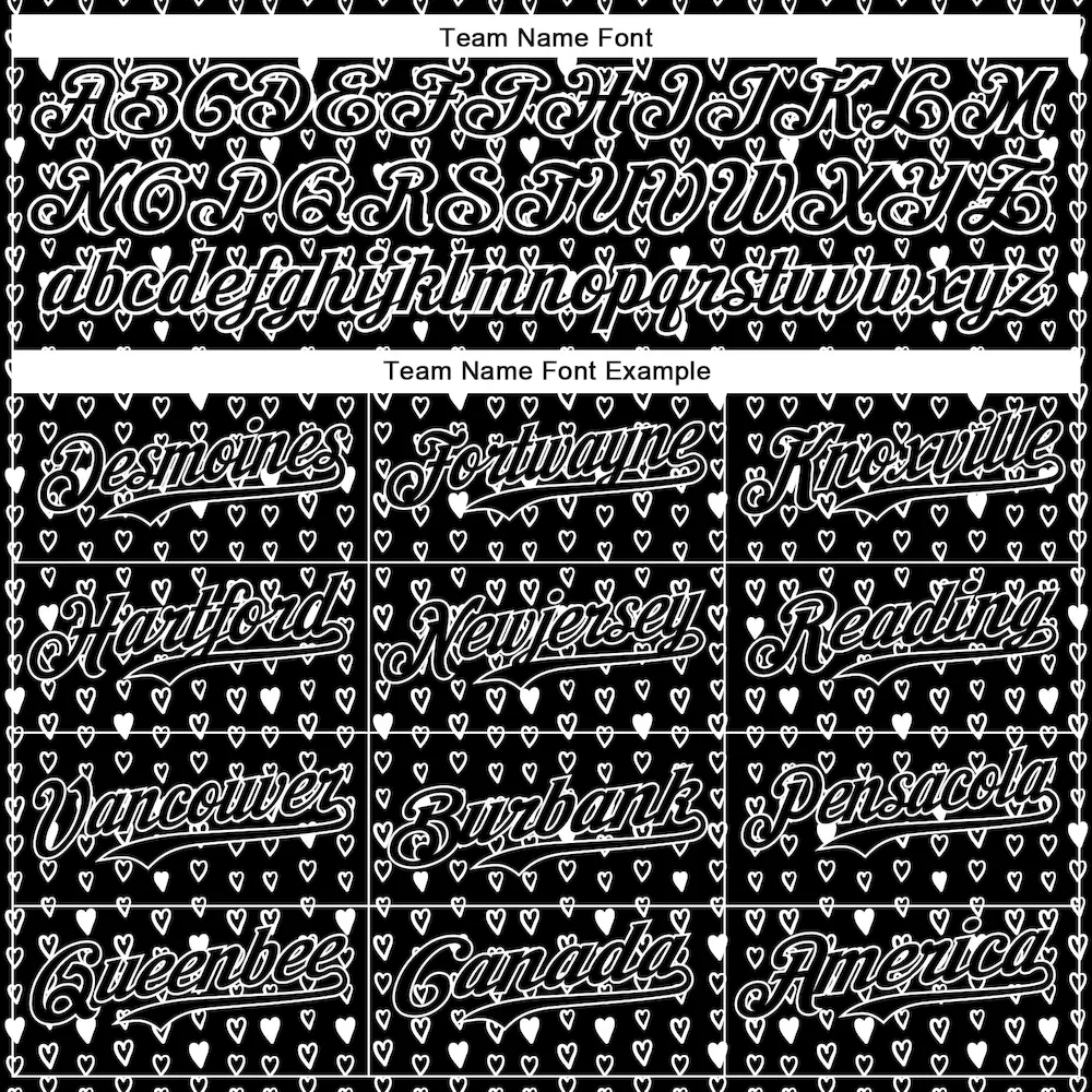Custom-Black-White-3D-Pattern-Design-Hearts-Authentic-Baseball-Jersey
